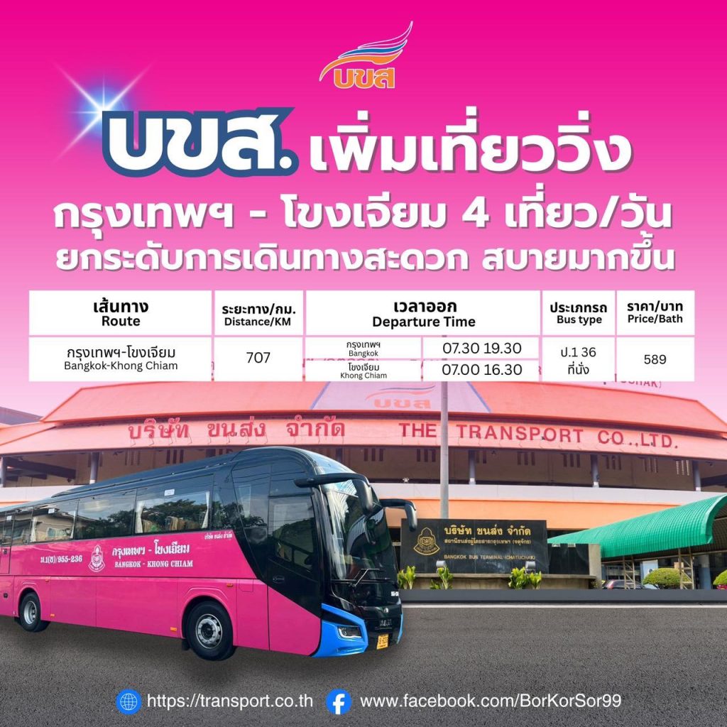 เที่ยวไป รถออกจากกรุงเทพฯ (หมอชิต 2) เวลา 07.30 น. และ 19.30 น.