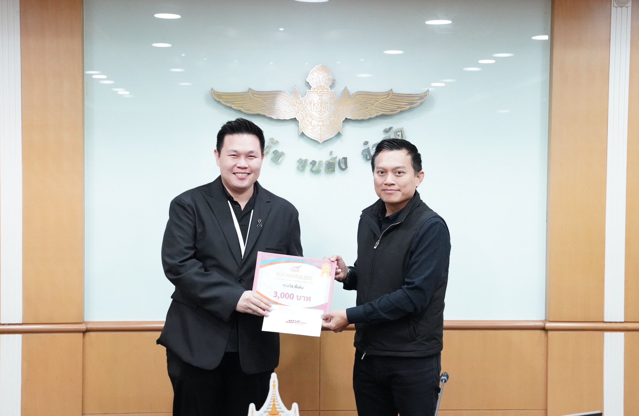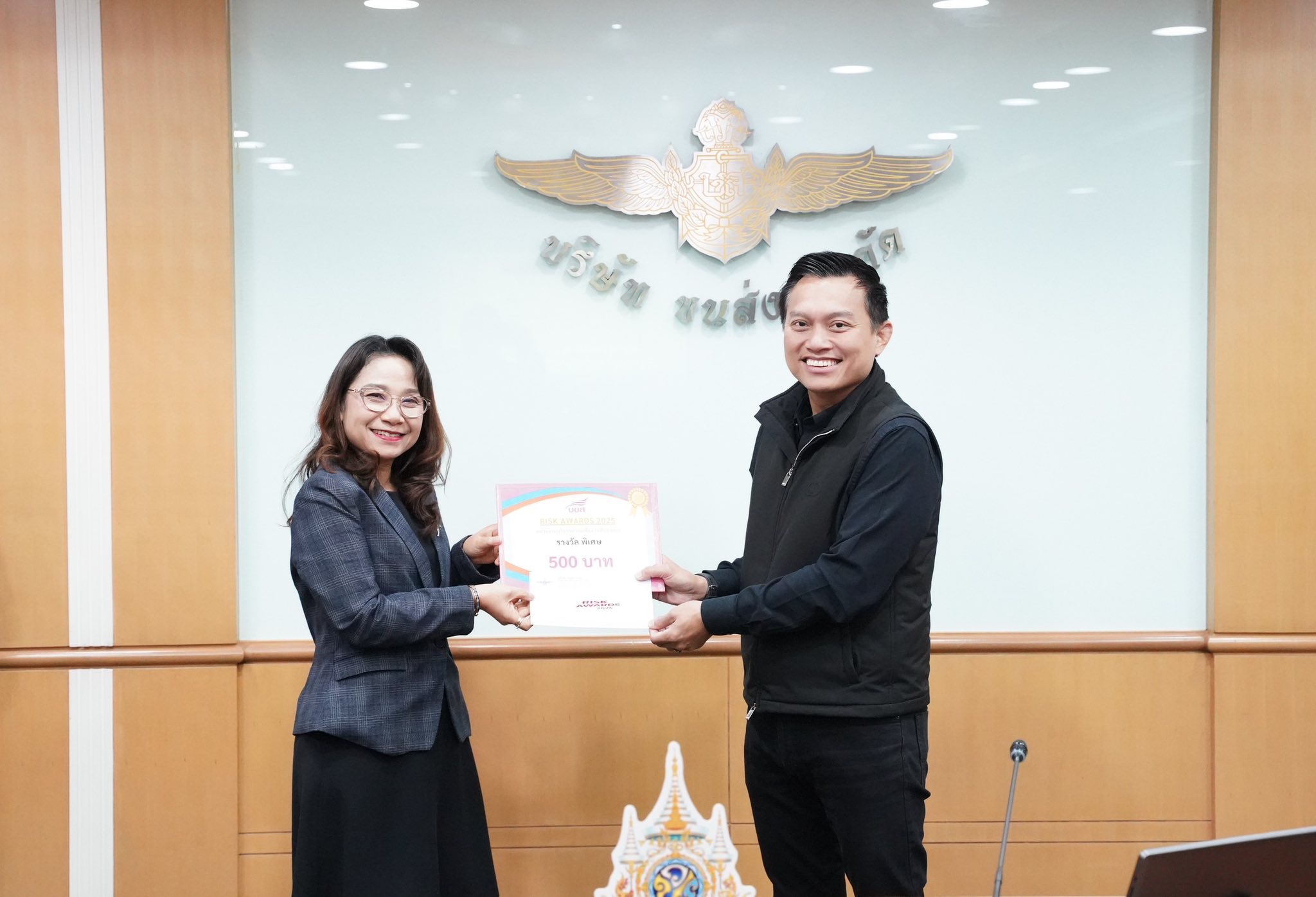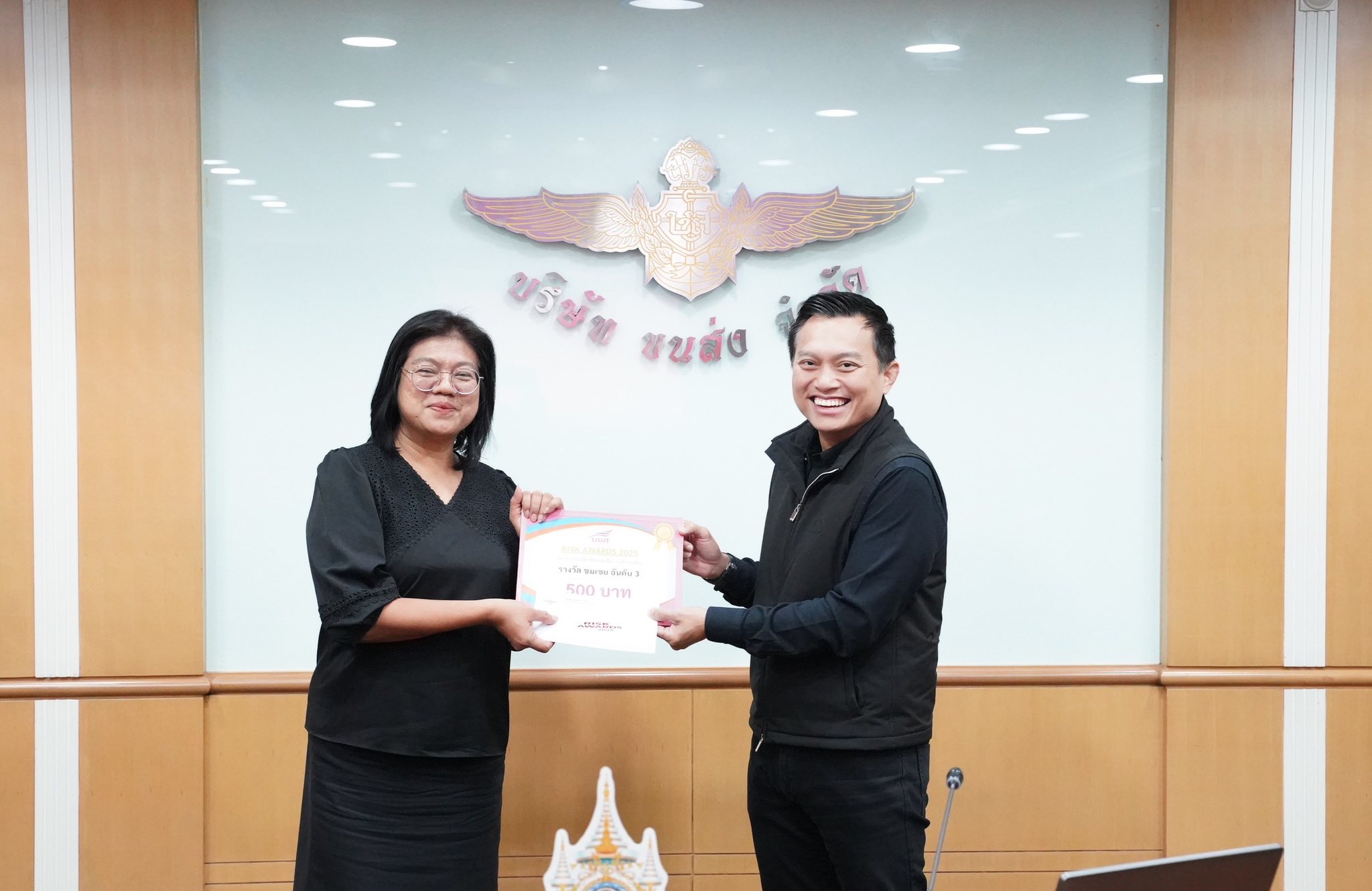 นายอรรถวิท รักจำรูญ กรรมการผู้จัดการใหญ่ บริษัท ขนส่ง จำกัด (บขส.) เป็นประธานมอบรางวัล “หน่วยงานบริหารความเสี่ยงดีเด่น” ในโครงการ Risk Awards 2025 โดยมีทั้งหมดจำนวน 21 รางวัล ได้แก่ รางวัลหน่วยงานดีเด่น (ระดับองค์กร) จำนวน 4 รางวัล ประกอบด้วย