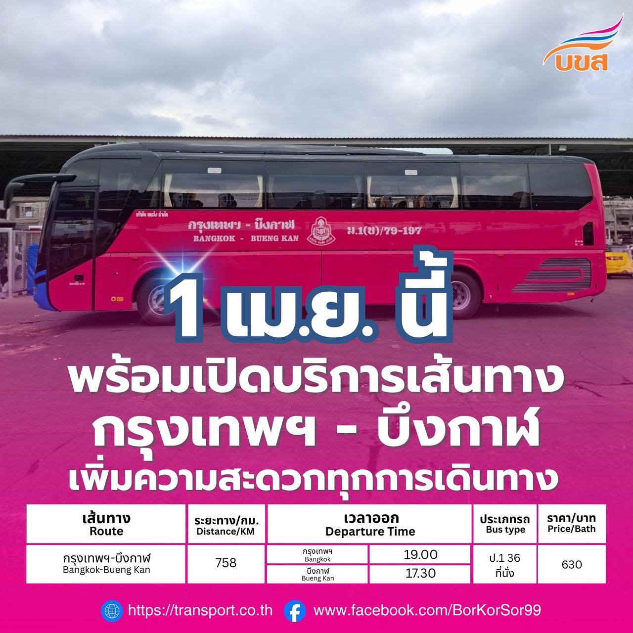 “บขส.” พร้อมเปิดบริการเส้นทาง ”กรุงเทพฯ – บึงกาฬ“ 1 เม.ย.นี้‼️เพิ่มความสะดวกทุกการเดินทาง