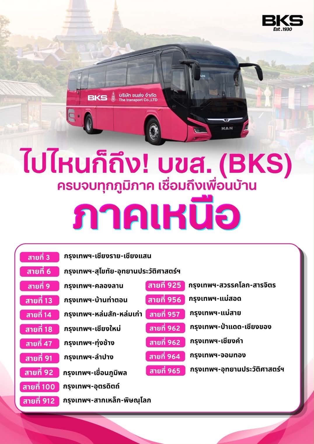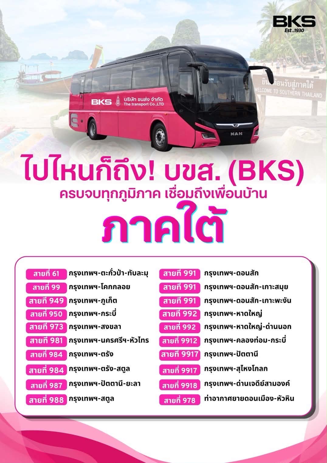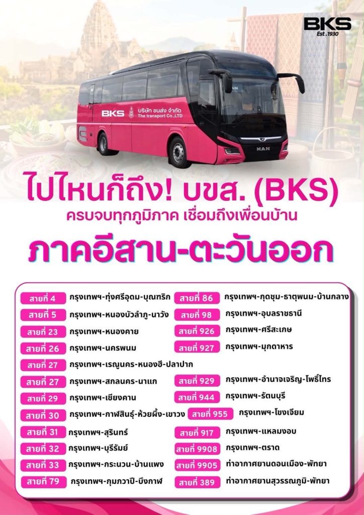 “บขส.” อัพเดทตารางการเดินรถโดยสารให้บริการรถโดยสารระหว่างประเทศ เหนือ-อีสาน-ใต้ รวม 61 เส้นทาง